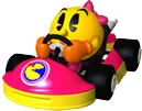 Ms. Pac-Man junto su vehículo en Mario Kart Arcade GP.