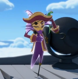 Captain Banshee is the main antagonist of the episode "Cap'n Banshee and his Interstellar Buccaneers". He's a cosmic ghost pirate who sails across Pac World's skies and the depths of space in his haunted flying ship with the aid of his ghostly crew and his pet parrot-dragon, calling themselves the Interstellar Buccaneers.