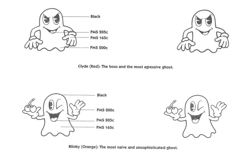 - Namco America's Characters and Logo Style Guide for the Pac-Man series issued in 1992 lists Clyde as red and Blinky as orange, establishing the inconsistency further.[1]