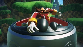 Eggman is the final boss of South Pac-Island in the level 300 IQ Evil Genius and fights Pac-Man inside of his Egg Mobile and his wrecking ball.