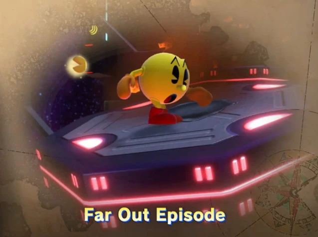 Far Out is the 9th level in Pac-Man World and its remake, Pac-Man World Re-Pac, and the second level in the Space Stage as well as where Professor Pac-Man is being held captive. The level consists mostly of several lasers and floating and tilting platforms. Introduced here is the Blue Alien enemy which will try to push Pac-Man off ledges.