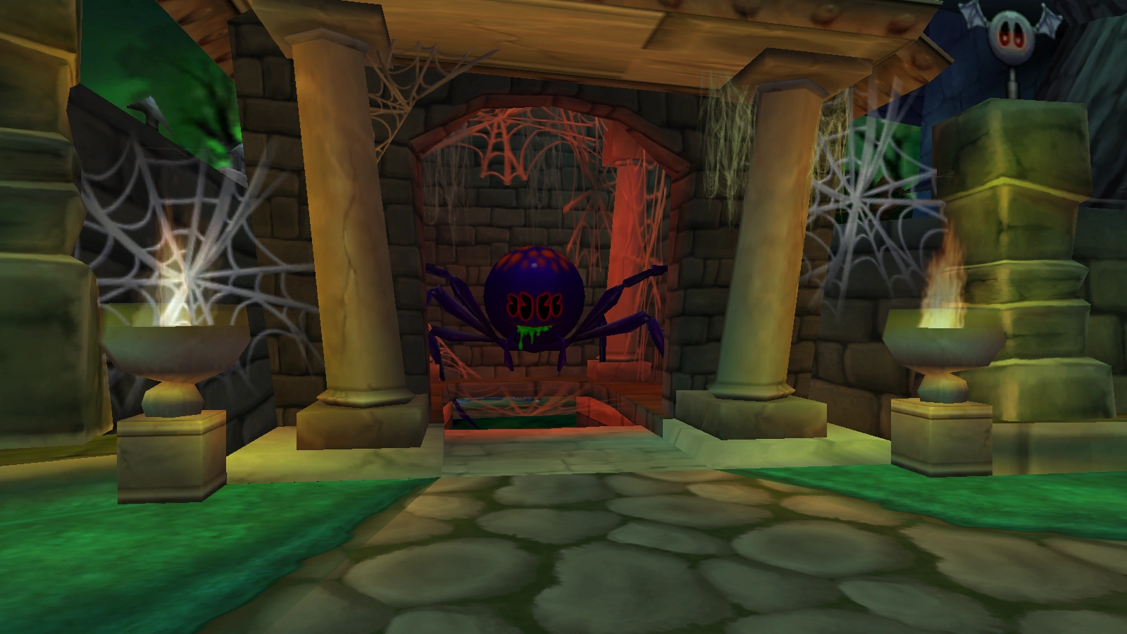 There's a spider in the entrance to the inner area of the arena. Despite its look, it is harmless.