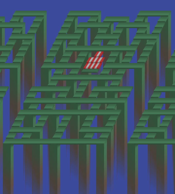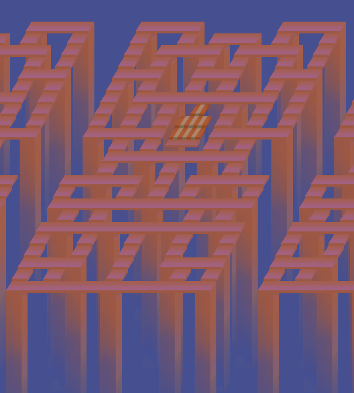 This world has no proper walls, but instead features elevated steps supported by tall, square beams. Some ghosts are slightly faster than the player. On the third round in the second loop of the game, a second Spunky joins the rest of the ghosts. Commons retain their ability to jump in this world, before losing it again in Block Town on the second loop.