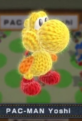 An unlockable Pac-Man costume in Yoshi's Woolly World