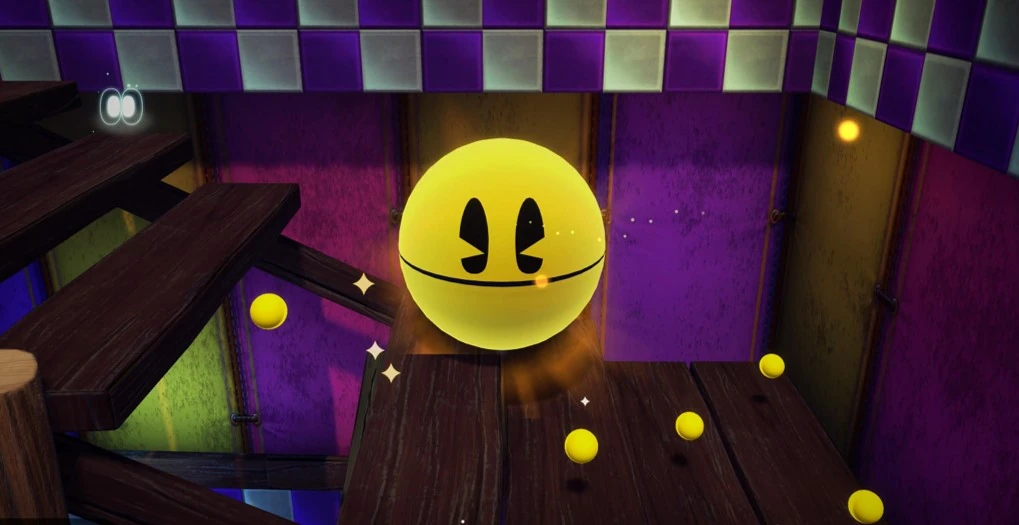 Pac-Man becomes invincible, and grows into a larger version of his spherical form, not only enabling him to eat Ghosts for a limited time, but he is powerful enough to destroy nearby terrain and any enemies around him, break chests and press switches without having to Butt-Bounce on them. Blocks also appear around him reducing the risk of him falling down a pit. In addition, stars surround the background and a version of the Pac-Man original arcade opening theme plays. In maze mini-games, he also becomes this form, becoming immune to stage hazards like steam and fireballs.