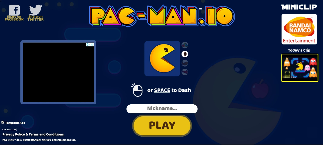 Pac-Man.io was an online Pac-Man game akin to agar.io. It plays very similarly to it, but adds in various other elements such as Ghosts and Fruit to give it a Pac-Man theme. The website and game were shut down in August 2019.