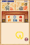Pac-Pix had a pressuring development period lasting 7 months, while additional staff not having arrived until two months after development began and game producer Yoshizawa also being involved with the production of another Namco game for the Nintendo DS; Mr. Driller Drill Spirits, simultaneously.[12][13][14][15] The game staff had encountered difficulties in creating concepts for Pac-Pix, and an early version of the game was criticized by higher-up staff at Namco for not being interesting enough.[16][17] An idea meeting was conceived late during Pac-Pix's development, with multiple ideas being conceived for the game but only select ones being implemented into the next prototype.[18] During development, Nintendo had requested Pac-Pix to make use of the Nintendo DS' top screen in addition to the bottom screen.[19] Inspired by a game on the TV show The Bottomless Derailment Game—in which contestants had to lift a balloon attached to a train on a circular track before it was popped—the developers conceived the idea of the top screen being used to protect ghosts and having Pac-Men travel in an inverted U-shaped path on the top screen.[20][21][22][23] The game staff had conceived the idea of arrows and bombs as Yoshizawa wanted more things to be drawn aside from Pac-Man.[24][25] The approach of the game's bosses were also conceived using the concepts of bombs and arrows.[26] Much of the game's final outlines became finalized during the last 2 months of development.[27] Following the second prototype showcase, staff were more impressed with the game quality.[28] Originally, the game was to feature three books, but was reduced to two at the request of Tetsuya Shinoda; with game difficulty balance such as the amount and speed of the ghosts being altered for the two books.[29][30]