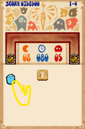 Pac-Pix is a touch screen game that uses the Nintendo DS' Touch Screen exclusively. The player uses the stylus to create Pac-Man drawings, which come to life and must be guided through each levels in order to eat all the Ink Ghosts. Across the game, there are three drawing gestures with different effects:
