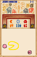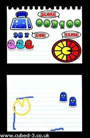 Screenshot from the game's first page. The Nintendo DS' touch screen is used to draw Pac-Man than come to life and eat ghosts.