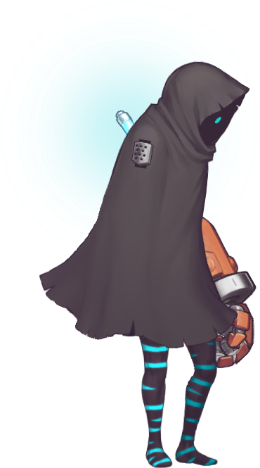 Swordsman No. 8 (剣士 Kenshi, lit. "Swordsman") is the protagonist of Shadow Labyrinth. He is a cloaked soul summoned without his memories or body to a mysterious planet by his Func-Bot guide, PUCK.[1]