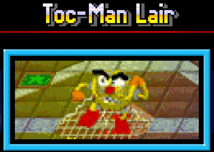Toc-Man's Lair is the final level and a boss realm in Pac-Man World and its remake, Pac-Man World Re-Pac. The level features Toc-Man fighting Pac-Man. This particular level reveals the reappearance of the family and friends of Pac-Man, and is only unlocked in the original once all of Pac-Man's friends have been freed.